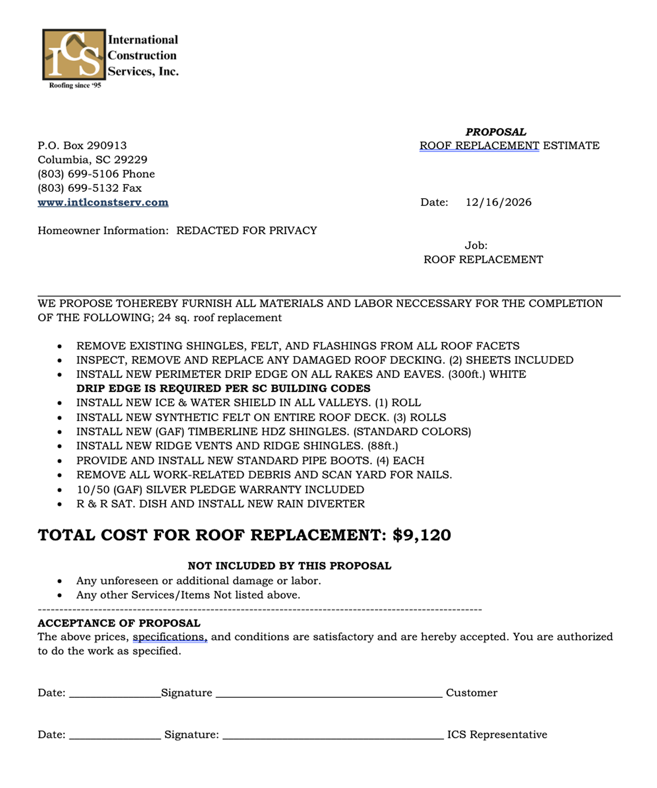 Our proposal includes the installation of drip edge, which is required by South Carolina building codes. To be exact you can find it in Section R905.2.8.5 (Residential) and Section 1507.2.8.3 of South Carolina's building codes.